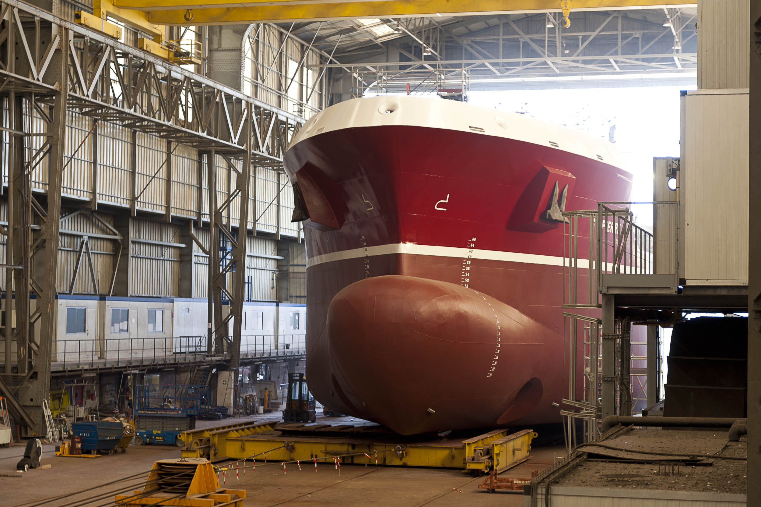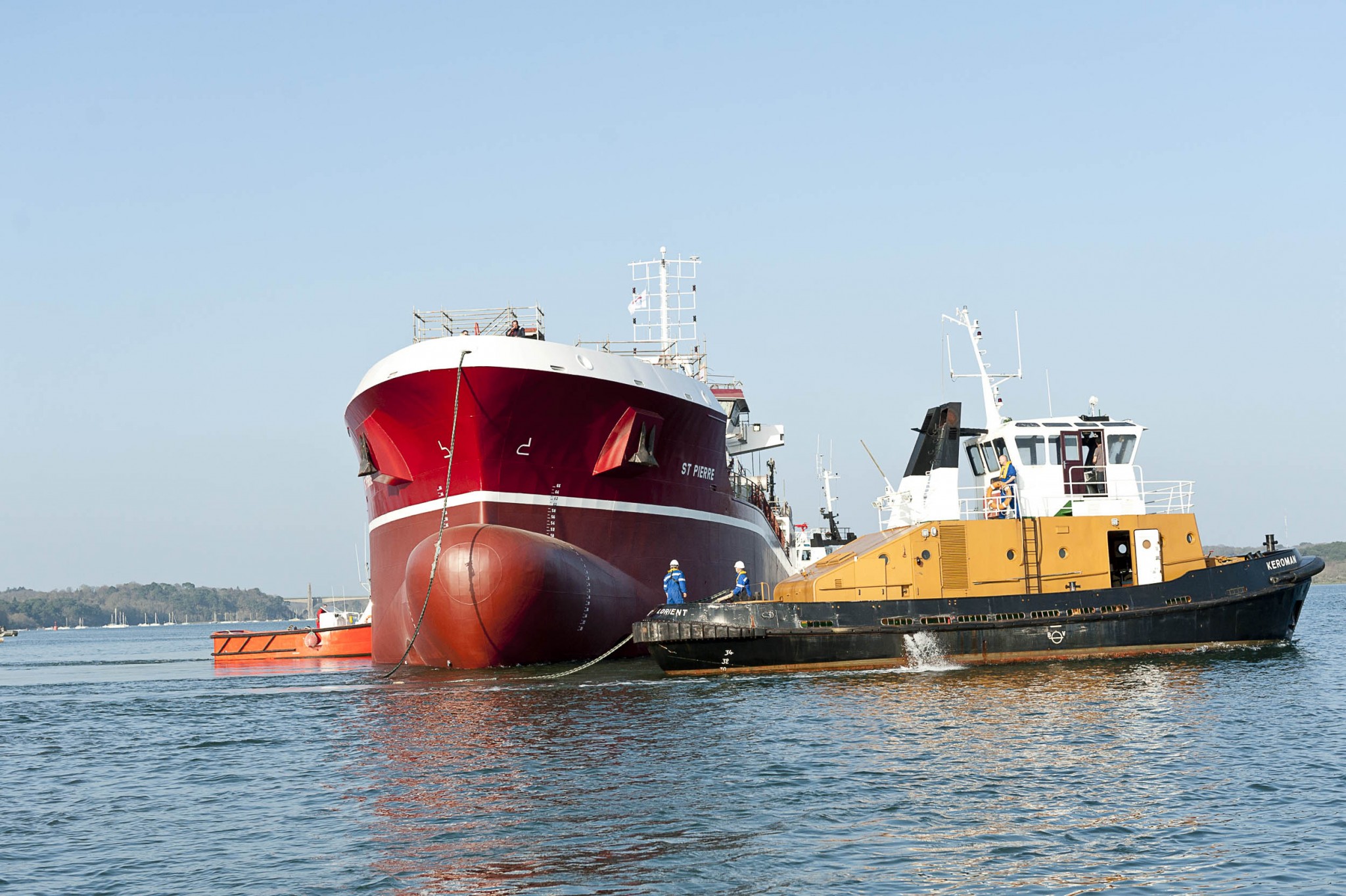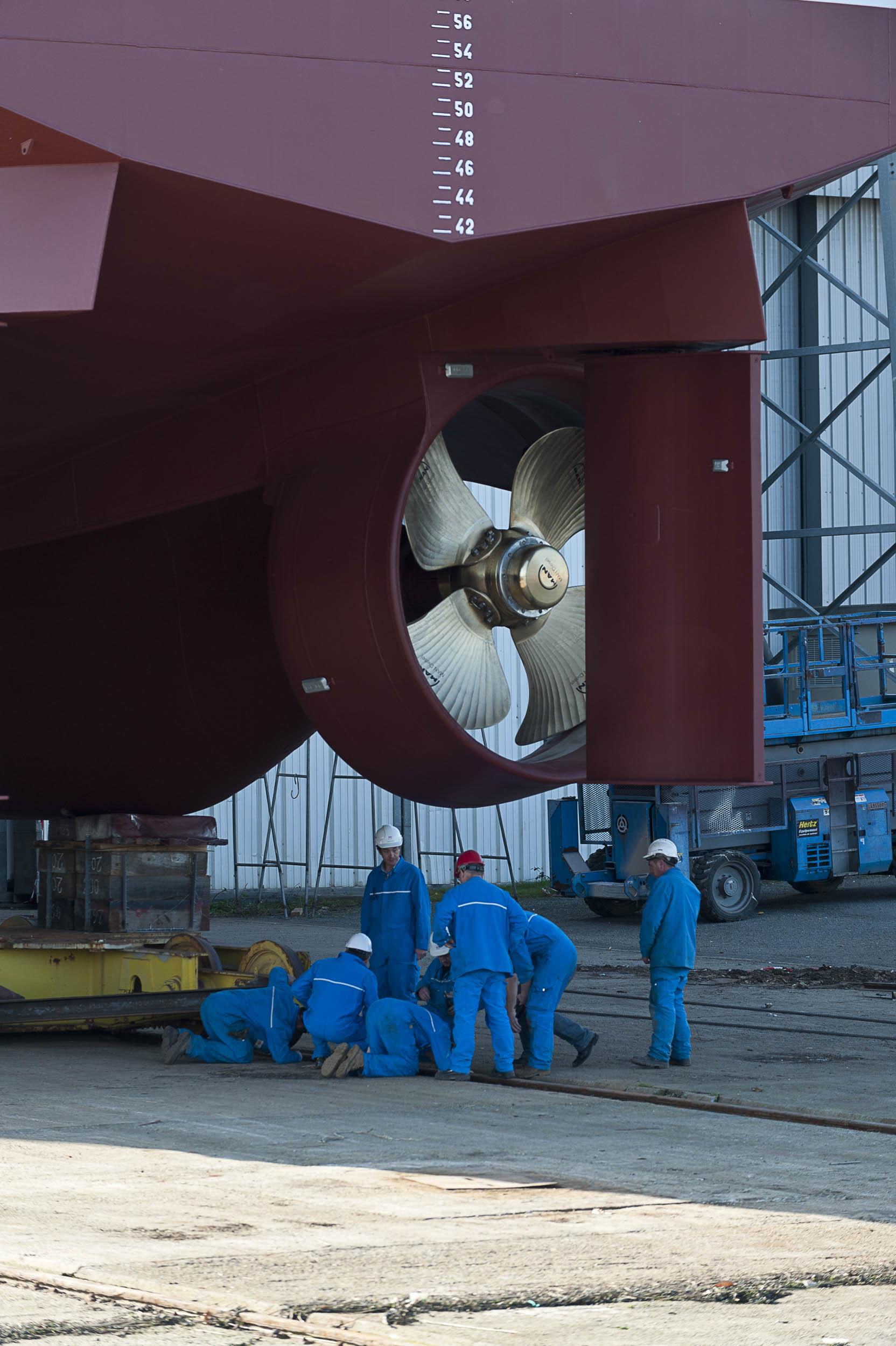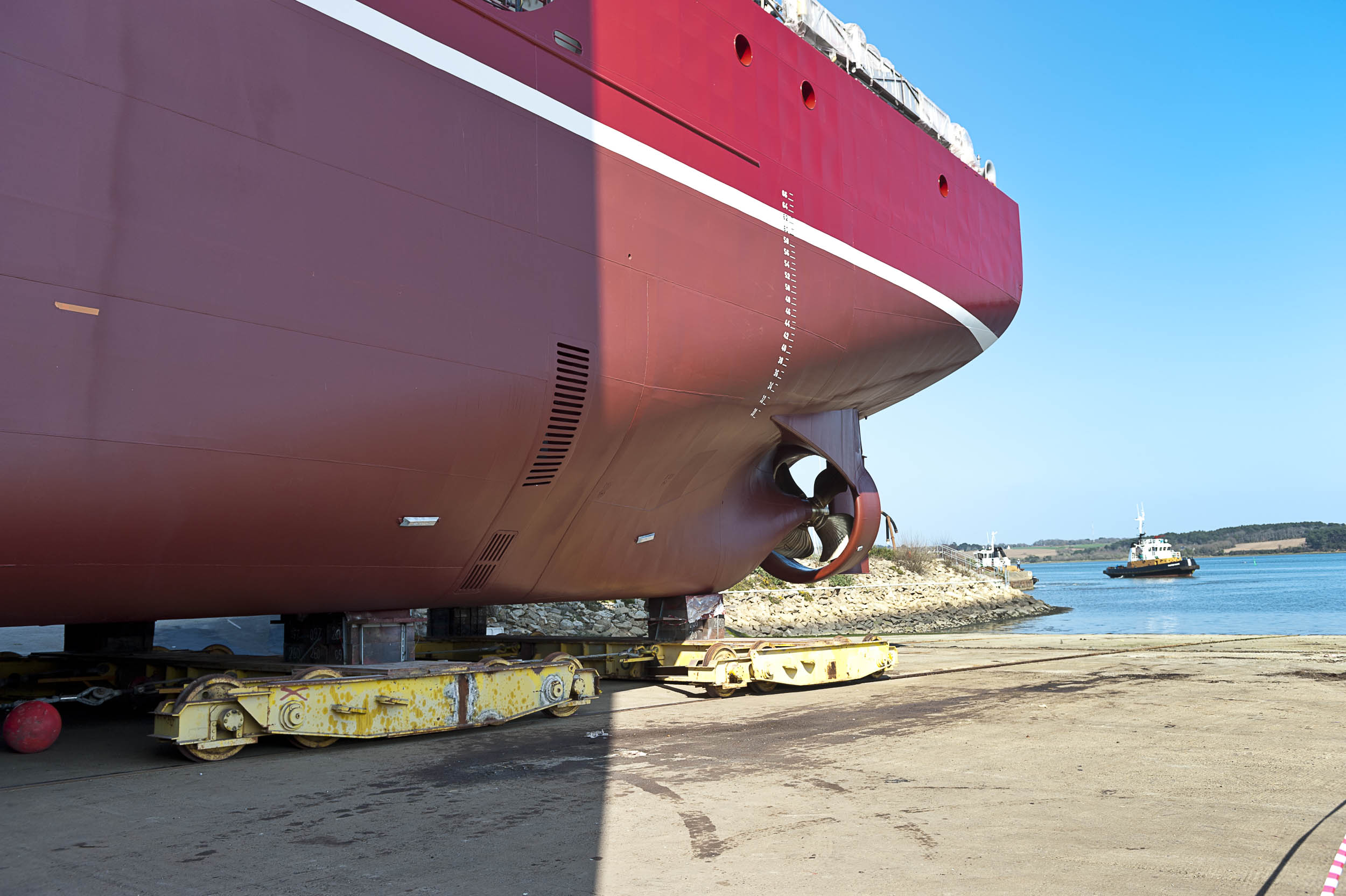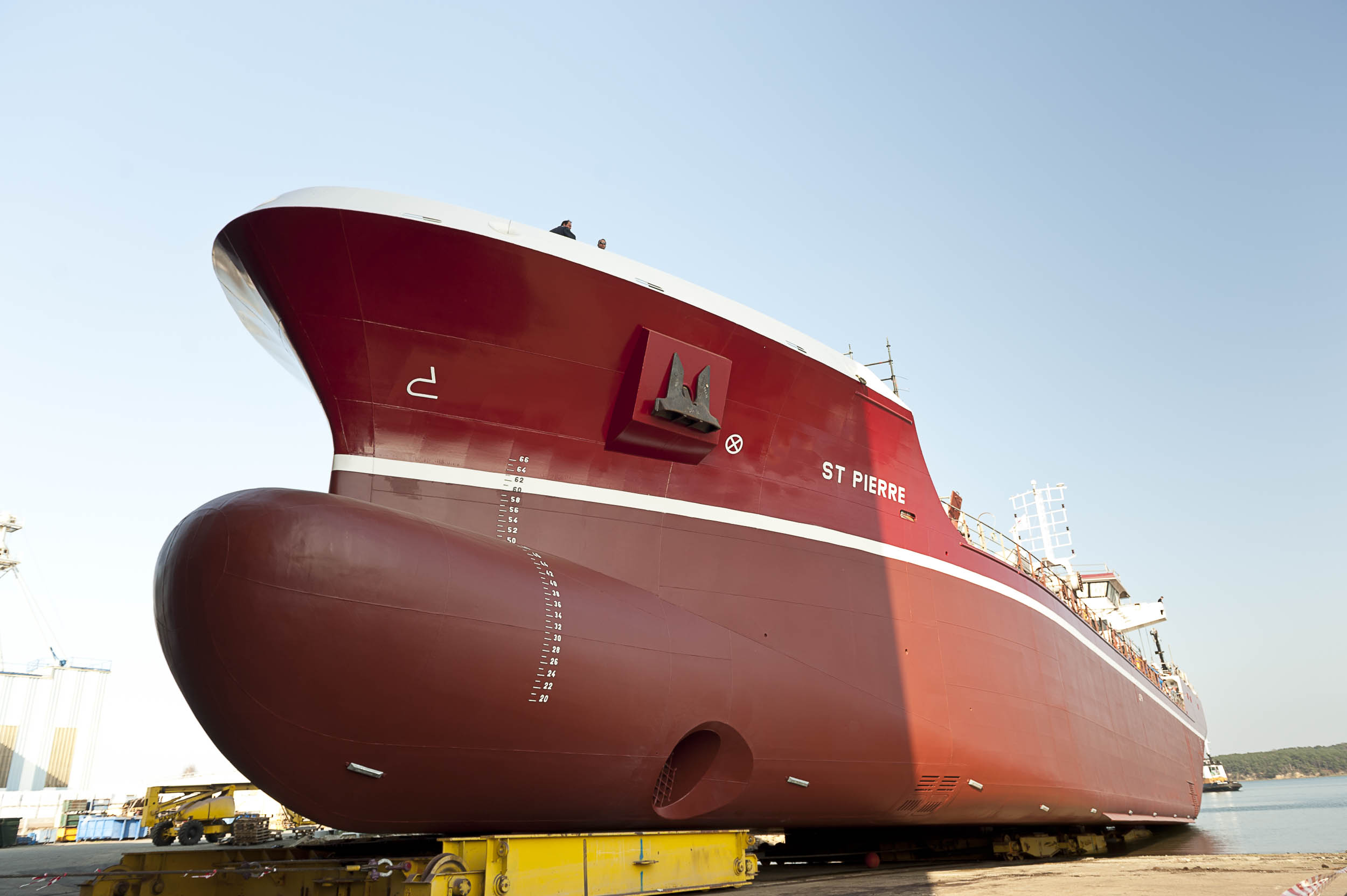 Mise à l’eau du sablier le Saint-Pierre au chantier STX de Lanester. Commandé par la Société de Transports Fluvio-Maritimes de l’Ouest, ce navire sablier à élinde traînante, d’une longueur de 84.10 mètres, pour une largeur de 15.6 mètres. Avec une vitesse de service de 13 nœuds et une capacité de 2000 m3, il pourra extraire des granulats jusqu’à une profondeur de 45 mètres. Le navire, qui bat pavillon français, sera exploité toute l’année sur la façade Atlantique.